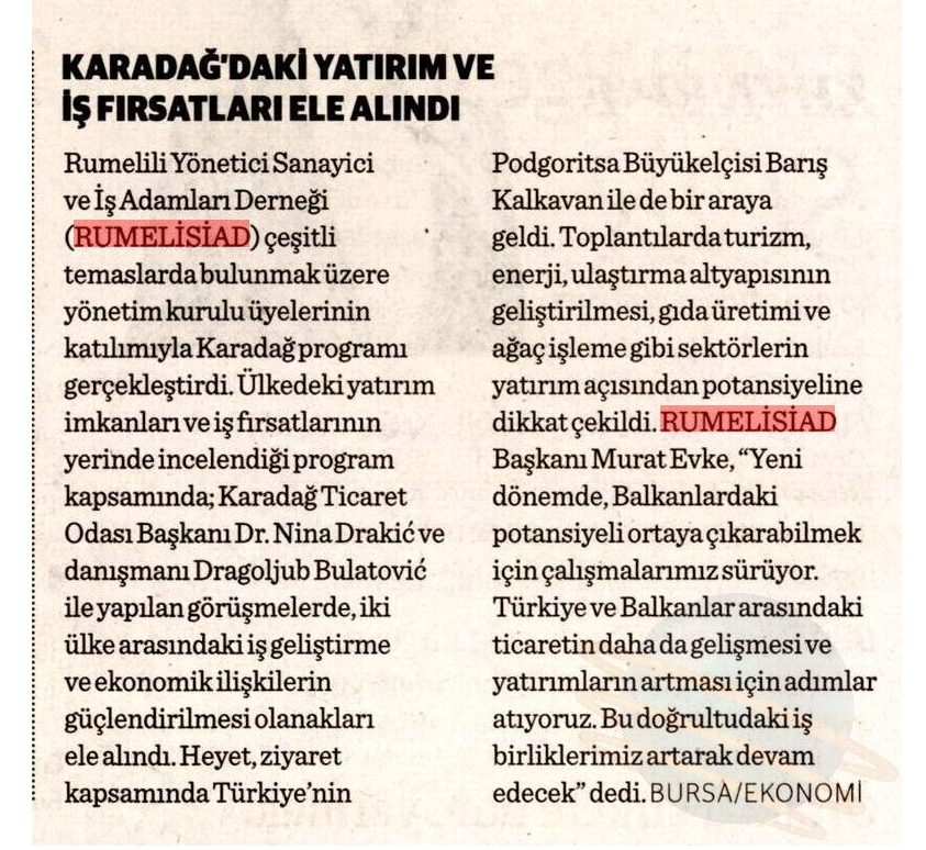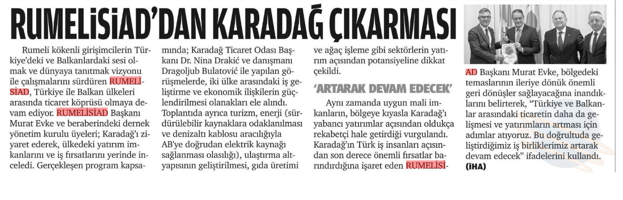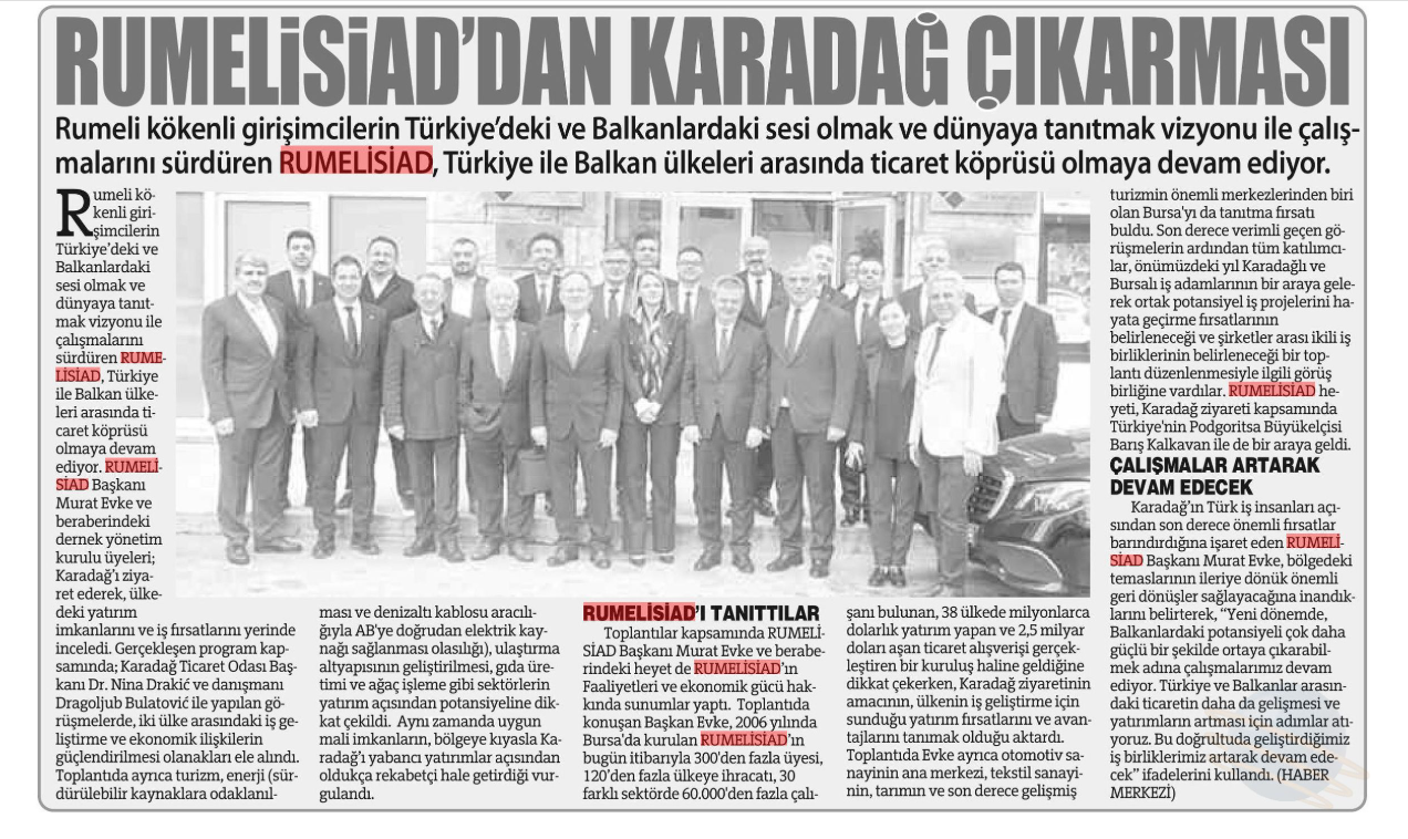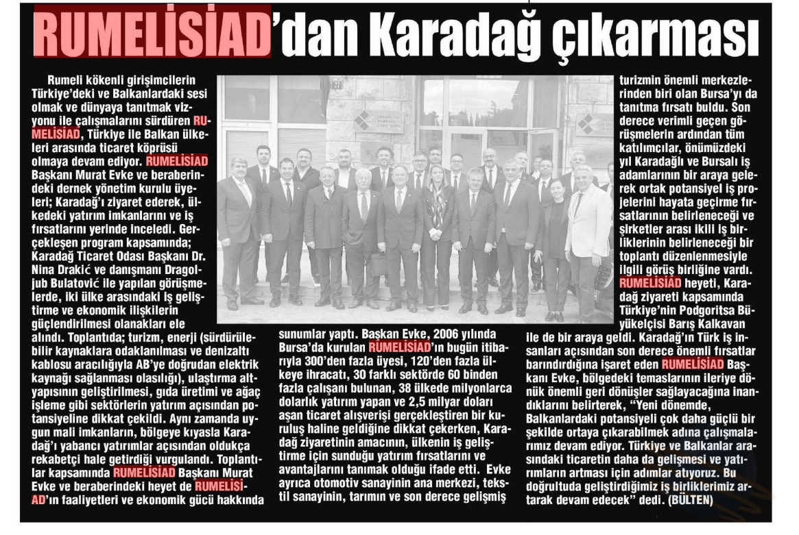 RUMELİSİAD heyeti, Karadağ ziyareti kapsamında Türkiye'nin