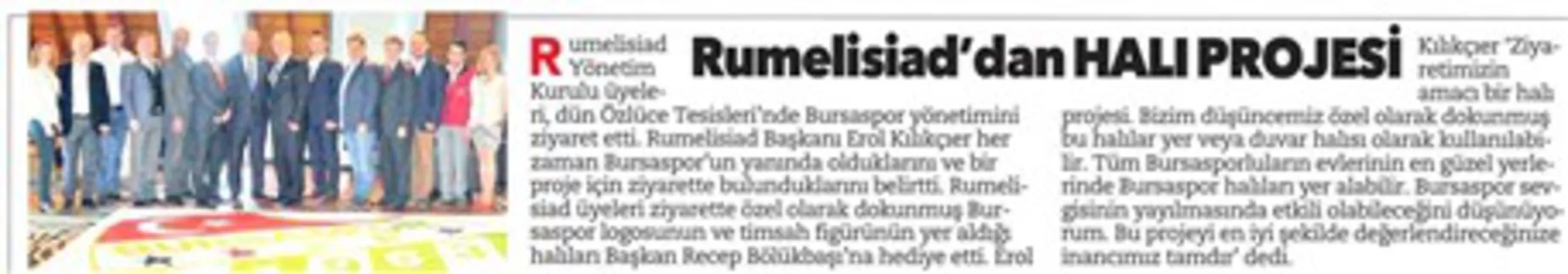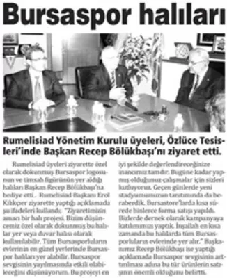 RUMELİSİAD - BURSASPOR işbirliği ile yapılan proje basında bu şekilde yer aldı.